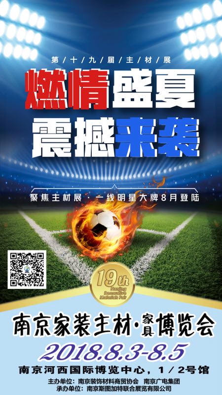這個夏天,燃情的可不止是球賽。第十九屆南京家裝主材·家具博覽會,攜手南京廣電集團,集結南京家裝主材一線明星大牌,環保高效超劃算的明星產品,究竟將會花落誰家,更多精彩,碼上關注。燃情盛夏,即將震撼來襲!